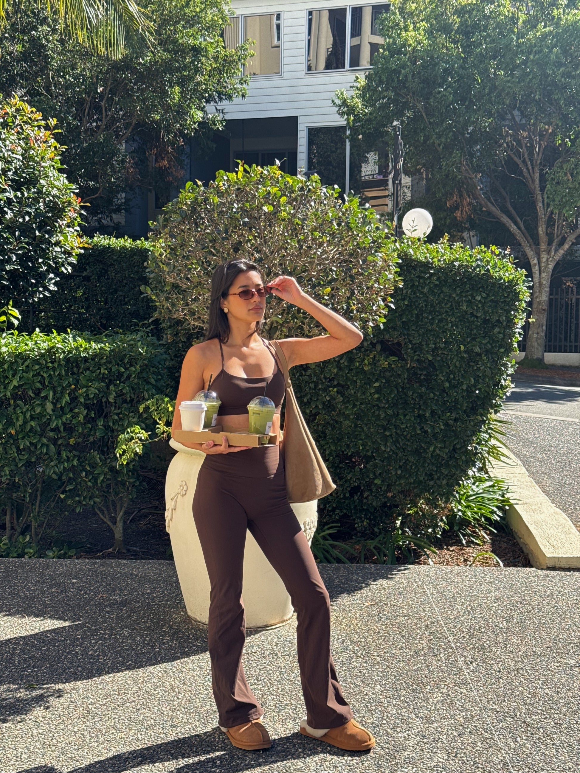 The most flattering high waisted flare leggings, perfect for everyday wear or a pilates/yoga class. In Maya fabric, these flares will mould to your body and enhance your natural curves.